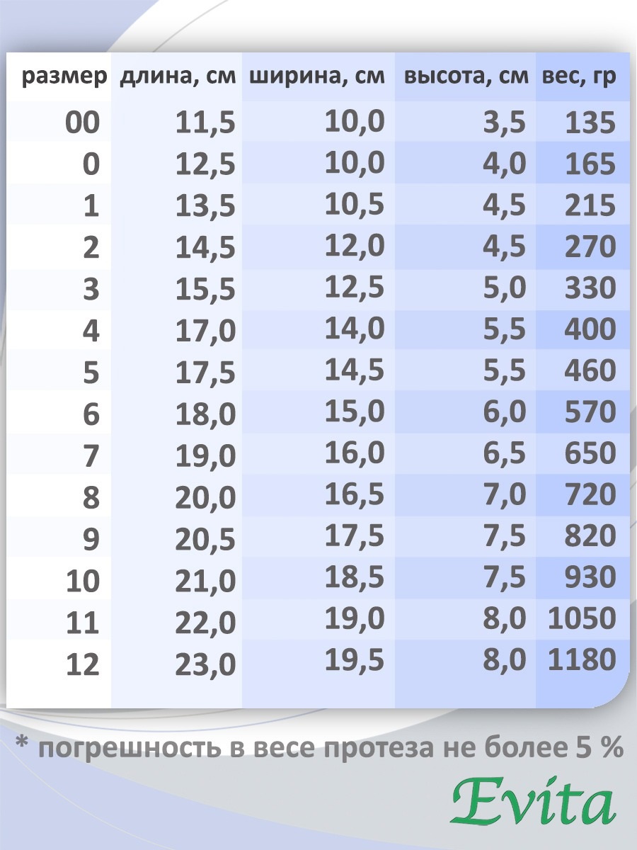 Вес и размеры экзопротезов